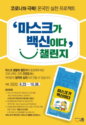 시흥시(시장 임병택)는 9월 23일부터 2주간 ‘마스크가 백신이다’ 챌린지 이벤트를 진행한다고 밝혔다.