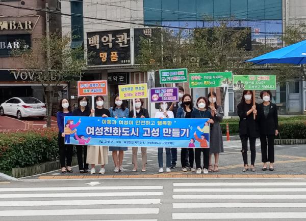 여성이 안전하게 생활할 수 있는 여성친화도시 고성을 조성하고자 “폭력 없는 안전한 고성”이라는 주제로 각종 폭력 예방·근절 및 안심귀가 거리 캠페인을 실시했으며, 고성군 안전지킴이단 “핑!고!”, 군민참여단, 아동·여성안전지역연대, with you 지킴이단, 고성가족상담소가 캠페인에 참여했다.