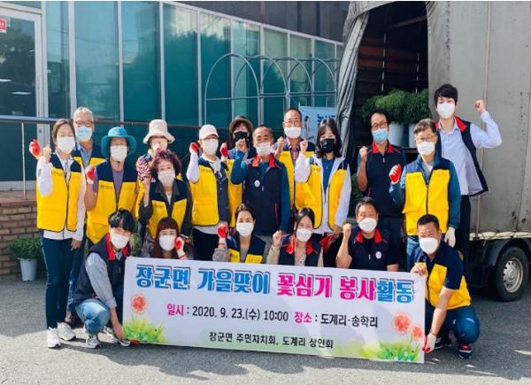 이번 행사는 가을을 맞아 도계리 아름다운 상가 거리 및 송학리 무궁화 동산 조성을 위해 마련됐으며, 상가 거리에 국화 200본을 식재하고 장군면 복지회관 무궁화 나무 일부를 이식했다.