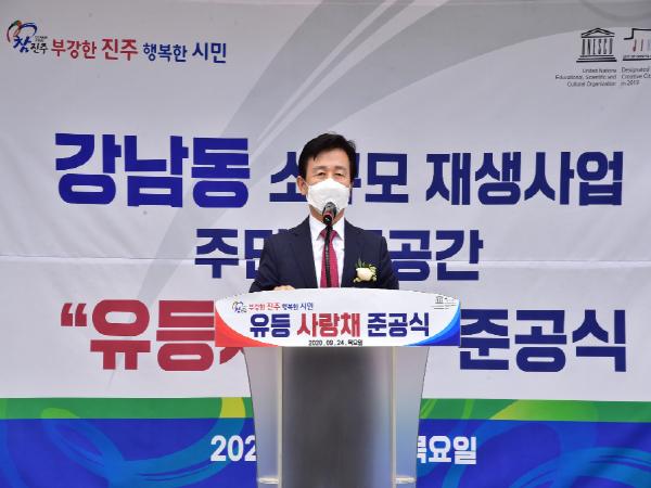 이날 준공식은 전국적으로 재확산되고 있는 코로나19 예방을 위한 방역수칙을 철저히 지키며 조규일 진주시장을 비롯한 시의원, 주민협의체 등 20여명이 참석한 가운데 간소하게 개최됐다.