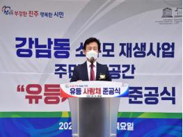진주시는 강남지구 유휴부지 내 소규모재생사업으로 주민들이 소통하고 참여할 수 있는 주민소통공간 “유등사랑채”를 조성하고 24일 오전 준공식을 가졌다.