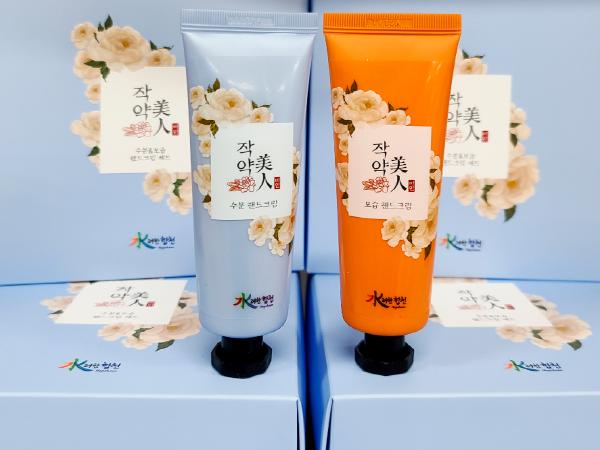 합천군(군수 문준희)은 지난 24일, 올해 7월에 출시한 작약을 이용한 음료인 작약美人에 이어 작약뿌리 추출물이 첨가된 화장품 2종(핸드크림세트(2종) 및 선크림)을 개발해 출시했다고 밝혔다