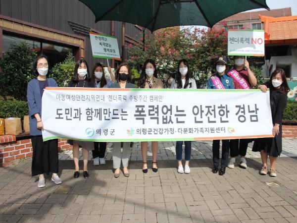 이번 캠페인은 도민과 함께 만드는 「폭력 없는 안전한 경남」슬로건 실현을 위하여 군 담당공무원, with you 지킴이단, 의령군건강가정·다문화지원센터, 의령경찰서 등 관련 기관의 관계자 15여명이 군청 사거리에서부터 의령전통시장 일원을 가두 행진하면서 젠더 폭력예방·근절을 위한 홍보물을 배포하는 등 거리 캠페인을 실시하였다.