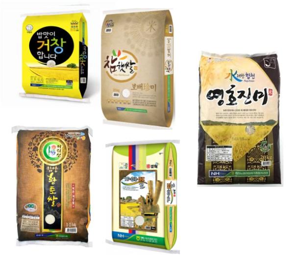 올해 선정된 5개 브랜드쌀은 밥맛이 거창합니다(거창), 참햇쌀 보배진미(진주), 수려한합천 영호진미(합천), 지리산 함양 황토쌀(함양), 가야뜰(김해)이다.