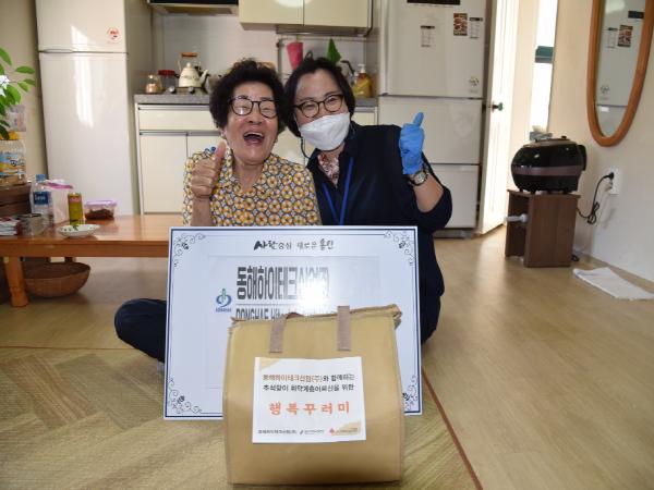 김기태 관장은 “코로나19의 장기화로 특히 독거어르신들이 매우 어려운 시기지만, 동해하이테크의 따뜻한 후원으로 어르신들이 보다 행복한 한가위를 보내실 수 있게 되어 감사드린다. 앞으로도 지역사회 기관들과 교류함으로써, 따뜻한 손길이 어르신들에게 전달 될 수 있도록 더욱 노력할 것.”이라고 밝혔다.