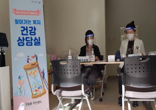 강동구 강일동은 지난 24일, 코로나19로 경제적 어려움을 겪고 있는 주민들에게 생필품을 전달하고 심리적 고립감을 느끼는 어르신들에게 안부를 묻고 불안을 해소시켜주는 강일톡&툭(안심talk, 불안툭) 「찾아가는 상담실」을 운영했다.