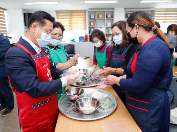 이들 다문화가정 주민들은 쌀가루와 완두콩으로 송편을 빚으며 우리 문화와 전통을 배우고 익히는 시간을 가졌다.