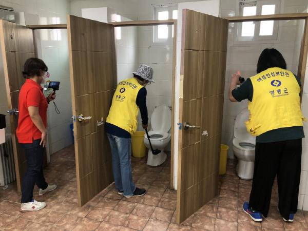 한편, 영동군은 지난 4월부터 여성안심보안관을 운영하여 관내 다중이용시설 공중화장실에 대한 불법촬영 몰래카메라 점검반을 상시 운영 중에 있으며, 지난 8월말 기준 점검건수는 600여건에 이르고 있다.