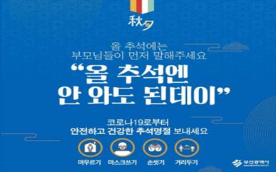 추석을 앞두고 고향 방문이 자칫 코로나19 확산으로 이어질 수 있다는 우려에 고향 방문을 자제하는 분위기가 확산하는 가운데, 부산시가 비대면 추석 연휴 보내기를 적극 독려하는 캠페인을 진행한다.