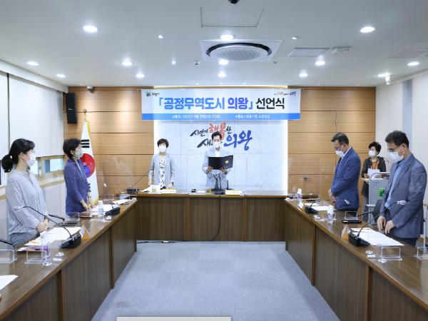 의왕시는 24일 시청 소회의실에서‘공정무역 도시 의왕’선언식을 개최하고 공정무역 도시를 향한 본격적인 발걸음에 나섰다.