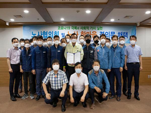 이번 행사는 대구도시철도공사와 양 노조 간 상생과 협력의 노사관계를 바탕으로 코로나19로 인한 사회?경제적 위기를 함께 극복하고 지역사회에 공기업으로서 사회적 책임을 다하고자 마련됐다.