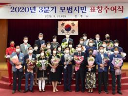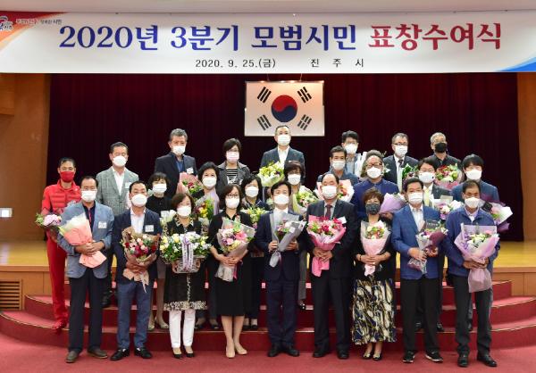 진주시는 25일 오전 10시 시청 시민홀에서 시정 발전을 위해 기여한 각계 각층의 유공자가 참석한 가운데 2020년 3분기 모범 시민 표창식을 가졌다.