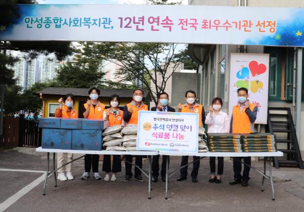 한국전력공사 안성지사(지사장 조성훈)는 한가위를 맞이하여 지난 24일 안성종합사회복지관(관장 정행건)에 식료품을 지원했다.