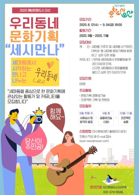 이를 통해 시민이 주도하고, 시민에 의해 발전해나가는 “이음으로 생동하는 문화도시 오산”을 위해 지속적으로 사업을 보완 및 개선해 나갈 예정이다.