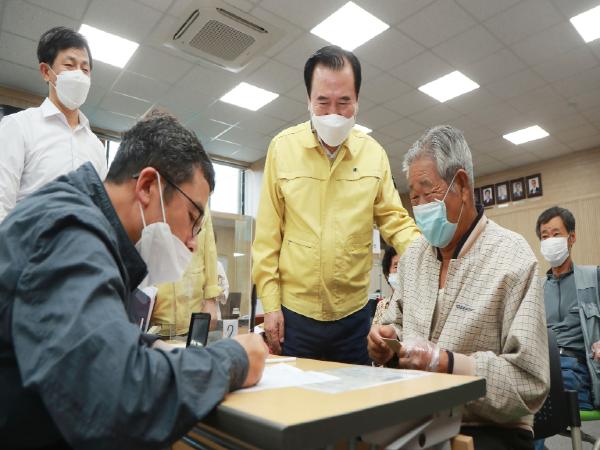 긴급 재난기본소득 지급 첫날 서춘수 함양군수는 함양읍사무소와 지곡면, 안의면사무소를 연이어 찾아 군민들에게 지급배경 등을 설명했다.