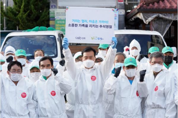 이승로 성북구청장과 성북구 주민자율방역단 40여명은 추석명절 특별방역을 진행하면서 “거리는 멀리, 마음은 가까이 ? 소중한 가족을 지키는 추석명절”피켓을 들며 성북구민의 동참을 권했다.