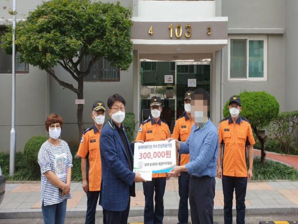 대전시소방본부와 법무부 법사랑위원 대전중구지구협의회(회장 박희정)는 25일 중구 선화동 공동주택 화재로 피해를 입은 가정을 방문해 자녀에게 학습 지원금을 전달했다.
