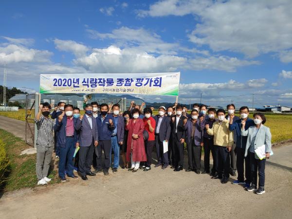 구미시 농업기술센터에서는 신기술 시범사업에 대한 전반적인 평가와 벼 작황을 관찰하는 식량작물 종합평가회를 9월25일 농업기술센터 대강당과 시험포장에서 쌀연구회, 쌀전업농회장 등 농업인단체협의회장 및 농협 등 유관기관 관계자 30여명이 참석한 가운데 개최하였다.