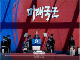 이와 함께 대통령은 "우리는 코로나 위기 앞에서도 누구도 넘볼 수 없는 포괄적 안보 역량을 믿고 방역과 경제에 집중하고 있다"며 "미래 국군은 전통적인 안보위협은 물론, 코로나와 같은 감염병, 테러와 재해재난 같은 비군사적 위협에도 대응해야 한다"고 강조했다.
