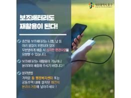 구 관계자는 “휴대용 보조배터리 분리배출은 자원 순환 사회 구축과 환경 보호 실천이라는 두 마리 토끼를 잡을 수 있다”며, “주민들의 많은 참여와 협조 바란다”고 밝혔다.