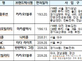 이번 면허로 3가지 브랜드택시가 새롭게 출시된다. ㈜나비콜은 전화와 플랫폼을 통해 호출하는 나비콜을, ㈜VCNC는 ‘타다 라이트’ 서비스를 출시할 예정이고, ㈜코나투스는 ‘반반택시’ 중개서비스에서 ‘반반택시 그린’ 가맹서비스까지 사업영역을 확대한다.