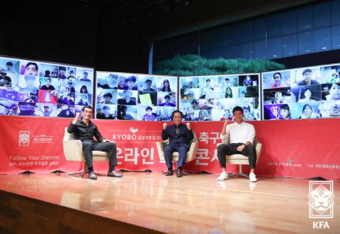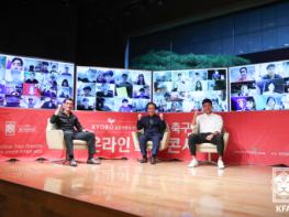 KFA는 24일 광화문 교보생명 23층 컨벤션홀에서 염기훈과 조원희를 초청해 KFA-교보생명 축구공감 온라인 토크콘서트 ‘K리그 리빙 레전드’편을 진행했다. 한준희 해설위원이 사회를 맡은 이날 토크콘서트는 200여 명의 축구팬이 온라인으로 접속해 비대면 형식으로 진행됐다.