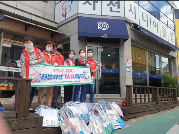 사천시지역사회보장협의체 통합서비스분과에서는 9월 24일부터 25일 양일간 삼천포종합시장, 사천읍시장에서 ‘코로나19극복! 전통시장 이용해요!’ 캠페인을 가졌다.