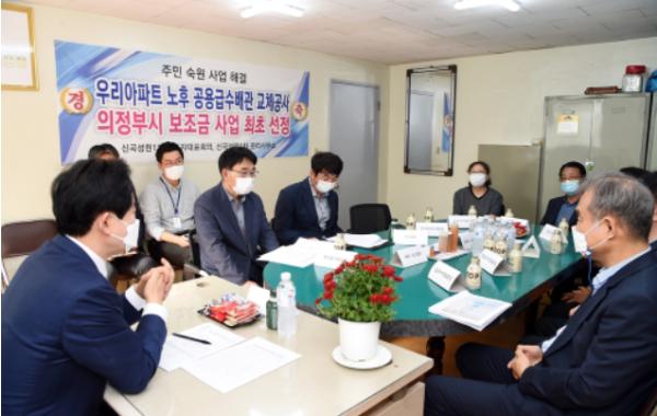 이에 따라 의정부시에서는 2020년 8월 21일 20년 이상 된 의무관리대상 공동주택 공용배관 개량지원에 대한 안내문을 홍보 및 발송하였으며, 2020년 8월 24일 ~ 2020년 9월 11일(19일)동안 해당사업 지원신청서를 접수 받아 현장시설 및 수질, 공동주택 장기수선계획 등을 검토한 결과 공동주택 3단지가 지원대상으로 선정되어 총 1,032세대가 공용배관 개량 지원의 혜택을 받을 수 있게 되었다.