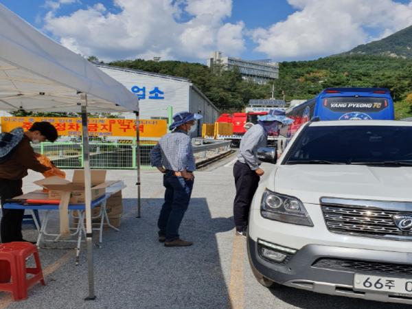 양평군농업기술센터에서는 과수작물 돌발해충 피해 최소화를 위한 사과재배농가를 대상으로 코로나19로 인한 비대면 드라이브 스루 방식으로 9월 28일(월) 13:00부터 16:00까지 농업기술센터 농업기계임대사업장 주차장에서 50농가/18.6ha 면적을 대상으로 농가에 방제 약제를 공급하였다고 밝혔다.