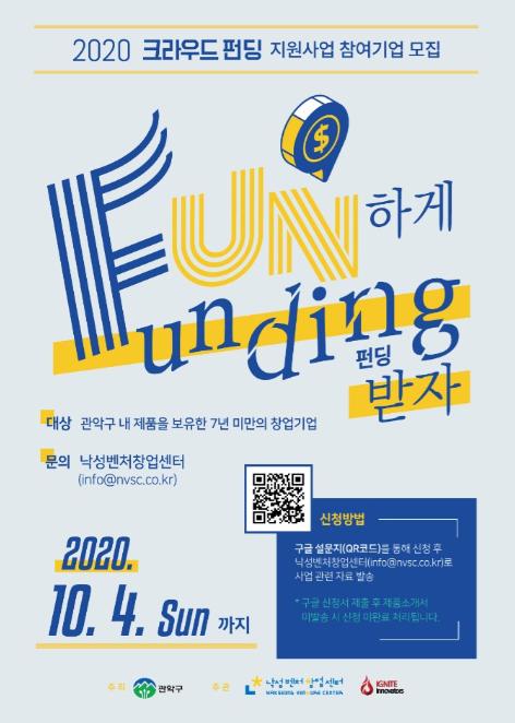 관악구 낙성벤처창업센터가 ‘크라우드 펀딩 프로그램’에 참여할 관악구 내 7년 미만의 창업기업을 다음달 4일까지 모집한다고 밝혔다.