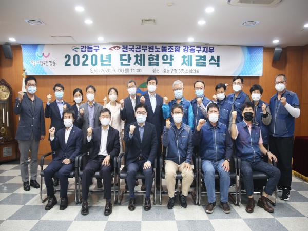 강동구가 9월 28일 전국공무원노동조합 서울지역본부 강동구지부와 ‘2020년도 공무원 노조 단체협약 체결식’을 개최했다.