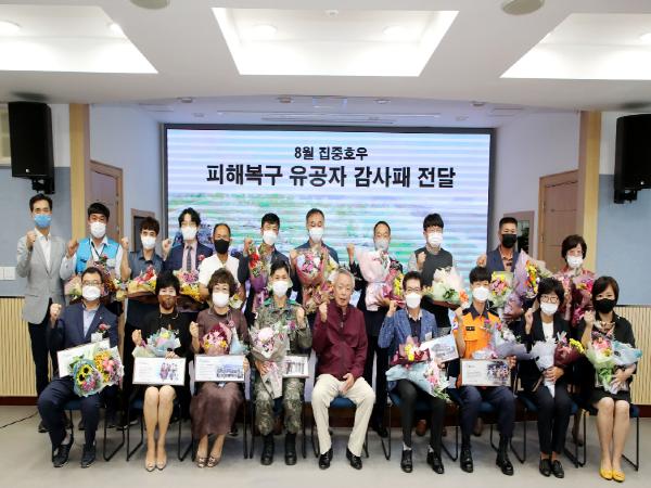 하동군은 지난 28일 군청 소회의실에서 집중호우 피해 복구를 위해 가장 먼저 자발적으로 달려와 헌신적으로 봉사해준 군부대·단체·개인 등 25명에게 감사패를 전달했다고 29일 밝혔다.