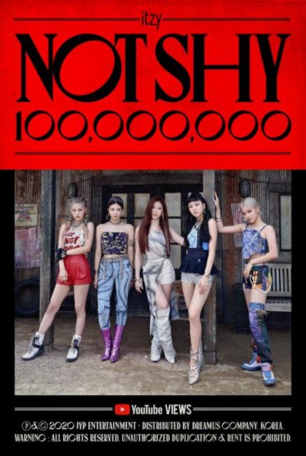 그룹 '있지(ITZY)'가 '낫 샤이(Not Shy)' 뮤직비디오로 '4연속 1억 뷰'를 달성했다.