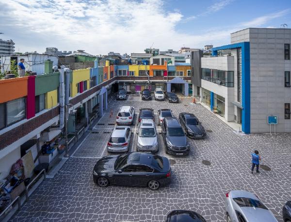 건물 외벽이 낙후된 상태로 방치돼 있고, 주차장 주변이 어두웠던 건물 외벽을 정리하고 유럽풍의 다채로운 색감을 입혔다.