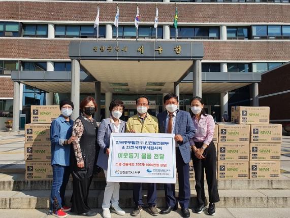 인천 서구는 한국중부발전(주) 인천발전본부와 인천사회봉사협의회(회장 김정임)으로부터 추석명절 스팸 선물세트를 전달받았다고 29일 밝혔다.