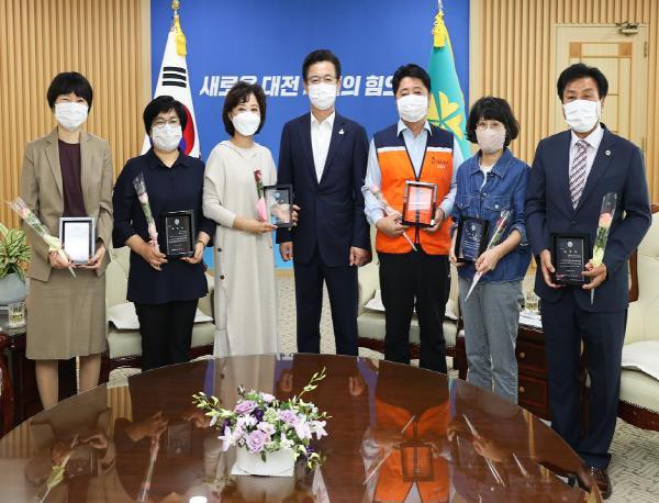 대전시는 29일 오전 11시 시청 응접실에서 허태정 대전시장이 참석한 가운데 수해복구 참여 봉사단체에 표창패를 수여했다.