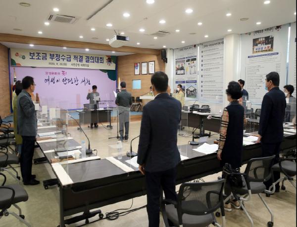 서천군은 29일 지방보조금심의위원회 위원 14명이 참석한 가운데 보조금 부정수급 예방을 위한 척결 결의대회를 가졌다.