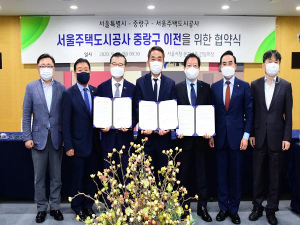 중랑구(구청장 류경기)가 서울주택도시공사(SH) 본사 이전을 본격화했다. 구는 28일 오전 9시 30분 서울특별시청 신청사 8층 간담회장에서 류경기 중랑구청장을 비롯해 김학진 서울특별시 권한대행 직무대리, 김세용 서울주택도시공사 사장이 참석한 가운데 ‘서울주택도시공사(SH) 중랑구 이전을 위한 협약’을 체결했다고 밝혔다.
