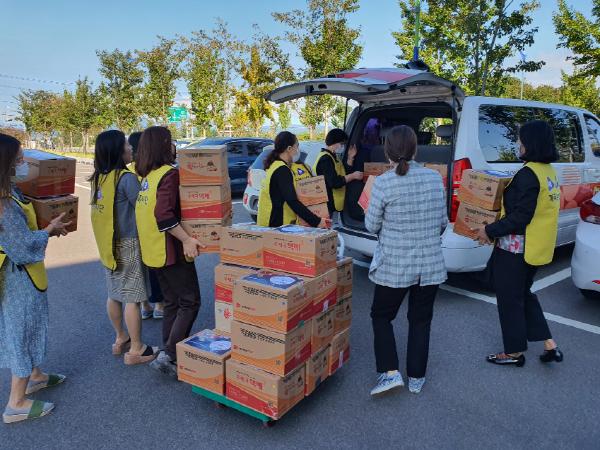 ‘心心풀이’ 이벤트란? 세모 가족봉사단이 준비한 비대면 가족이벤트로 아이들이 좋아하는 간식과 학용품을 꾸러미로 만들어 사랑을 나누고 싶은 이웃 친구들에게 전해주는 행사이다. 센터 회원들과 직원들 50명이 동참 하였으며 만들어진 꾸러미는 9월 25일 지역 내 청소년 그룹홈 3곳, 아동센터에 전달되었다.