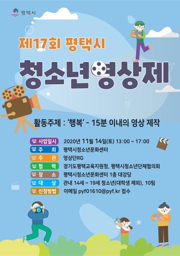 평택시청소년문화센터는 오는 10월 30일까지 ‘제17회 평택시 청소년영상제’ 참가자를 모집한다.