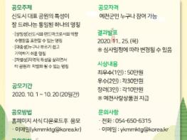 아울러, 수상자에게는 최우수상(1명) 50만 원, 우수상(2명) 각 30만 원, 장려상(3명) 각 10만 원 등 총 140만 원의 예천사랑상품권을 지급할 계획이다.