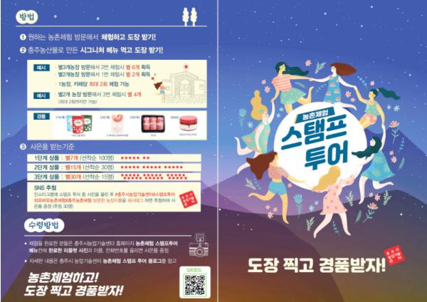 충주시 농업기술센터가 코로나19로 위축된 농촌체험농가 활성화를 위해 ‘농촌체험 스탬프투어’를 시범 실시한다고 밝혔다.
