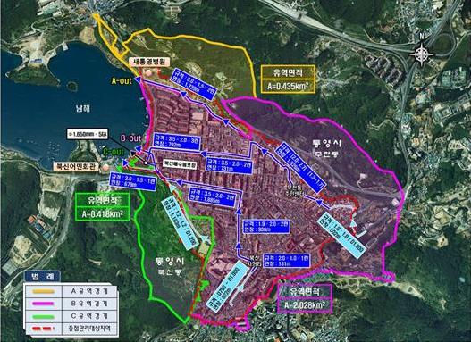 통영시는 도시침수가 빈번히 발생하는 북신배수분구(무전, 북신) 지역을 하수도정비 중점관리지역으로 지정받기 위해 주민설명회 및 현장 확인 등 긴밀한 협조체계를 구축해 하수도정비 대책수립용역을 시행했다.