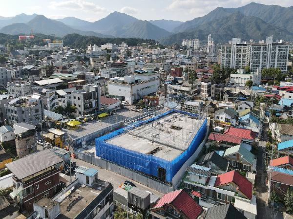 가평군이 가평읍 잣고을시장 내 건축중인 ‘전통시장 창업경제타운 조성’사업이 9월말 현재 40%의 공정률을 보이고 있다.