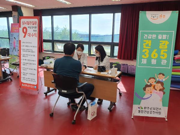 5일 완주군 보건소는 직장인들의 건강증진과 건전한 생활습관 형성을 위해 관내 사업장을 대상으로 ‘건강한 출발~ 건강 365 체험관’을 지난달부터 운영하고 있다고 밝혔다.