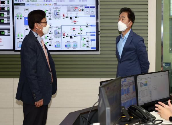 정장선 평택시장이 5일 세교가압장(경기대로586) 내 위치한 상수도 종합관제센터를 방문해 상수도 시설 점검 및 관리 실태 등 운영현황을 점검했다.