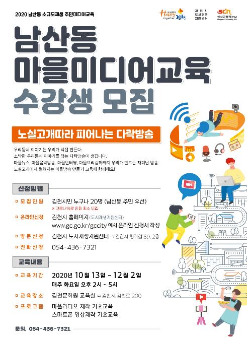 김천시는 남산동 소규모재생사업 추진에 따른 마을미디어 수강생을 모집한다.