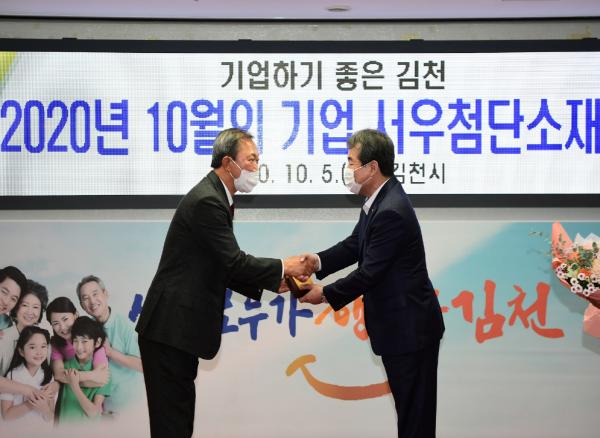 김충섭 김천시장은 “서우첨단소재(주)의 이달의 기업 선정을 축하드리며, 친환경 기술을 바탕으로 한 해외시장 공략으로 해당 분야 최고 기업으로, 김천경제를 이끄는 견인 기업으로 발전하기를 응원하겠다.”고 전했다.