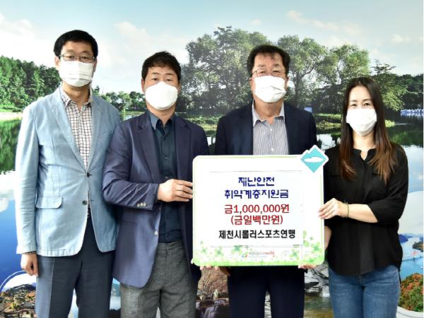 제천시롤러스포츠연맹은 지난 29일 제천시청을 방문해 재난안전취약계층 지원을 위해 써달라며 성금 1백만 원을 기탁했다.