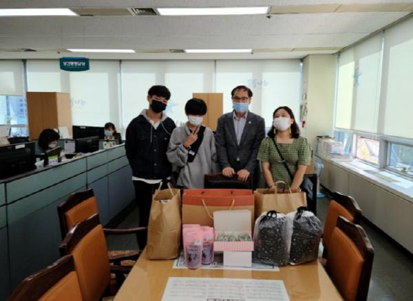 부산시 사상구청소년지원센터 꿈드림(센터장 윤경선)에서는 지난 21일 학교밖(기회)청소년들이 직접 만든 캐릭터 마카롱과 팩커피 100개를 사상구 보건소에 전달했다고 밝혔다.